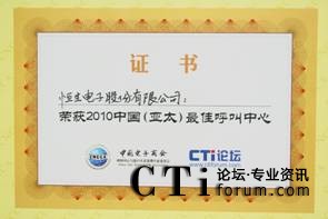 恒生通信榮獲中國(亞太)最佳呼叫中心大獎(jiǎng)