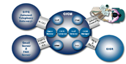CICM是ITI解決方案中的核心模塊,該模塊完成系統(tǒng)涉及到互聯(lián)網(wǎng)的所有通話的控制,包括VOIP、E-mail、Chatting、畫像通話等。而該模塊與CICR的連動正是完成CTI和ITI技術完美結合的關鍵。即當一個網(wǎng)上呼叫呼入時,由CICR返回所分配的話務員相關信息(如:IP),然后CICM將該信息送給客戶使得網(wǎng)絡聊天和WEB到電話的通話得以同步。而CCPM