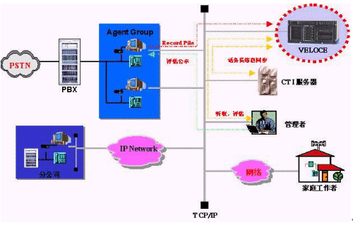 現(xiàn)在國內(nèi)市場上的絕大部分錄音設(shè)備是基于語音板卡的,而VELOCE 是通過小巧的USB錄音模塊連接到話務(wù)員PC上,利用數(shù)字語音壓縮技術(shù)和加密技術(shù)把通話內(nèi)容存儲(chǔ)到話務(wù)員PC,