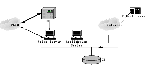注: 本系統(tǒng)結(jié)構(gòu)靈活, TTS, Application Server 和語音識別引擎可以根據(jù)系統(tǒng)的大小分別分布在幾臺服務器上, 或者集中在一臺服務器上.