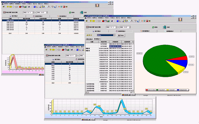 ·按照時間對來電以及Traffic進(jìn)行統(tǒng)計,并且從立體折線圖中看到所選的日期內(nèi)各個時間段的呼叫分布數(shù);