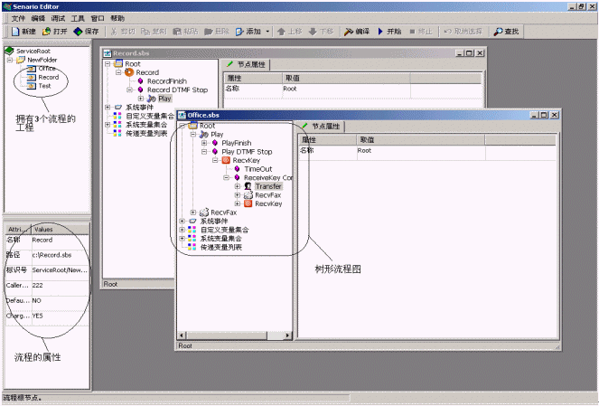6. 仿真測試功能,可以在流程的編輯過程中模擬實(shí)際環(huán)境進(jìn)行流程測試;提供聲卡輸出模式,可以模擬電話按鍵;流程的執(zhí)行節(jié)點(diǎn)將會動態(tài)加亮顯示,清晰地看到流程的走向;