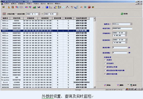 ACS提供支持實(shí)時撥號過程監(jiān)視,外撥計(jì)劃管理,如特定時間段執(zhí)行特定的外撥任務(wù),以及針對客戶忙、客戶接聽超時、呼叫失敗、傳真接聽、Modem接聽等意外情況檢測,提高坐席接通率,減少無謂的等待,提升工作效率。