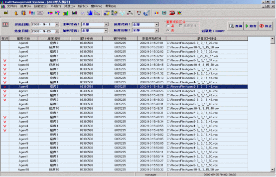 實(shí)時多通道數(shù)字錄音系統(tǒng),可以實(shí)現(xiàn)坐席的全程錄音。并對錄音文件進(jìn)行多條件匹配(來電號碼、座席工號、來電日期、重要標(biāo)識)的查詢工作,生成錄音統(tǒng)計(jì)信息。