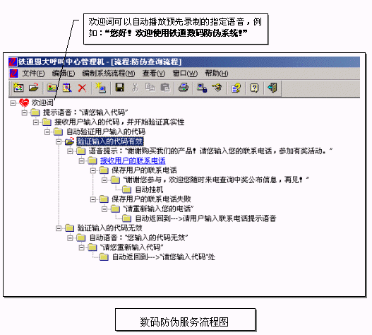 鄭州鐵通的"小成本"源于:采用了價(jià)廉物美的"鐵通恩大呼叫中心"系統(tǒng)平臺,充分利用"恩大服務(wù)流程編制器",直接編制"數(shù)碼防偽服務(wù)流程"。從搭建系統(tǒng)平臺,到防偽服務(wù)投入使用,前后只用了半天時(shí)間。