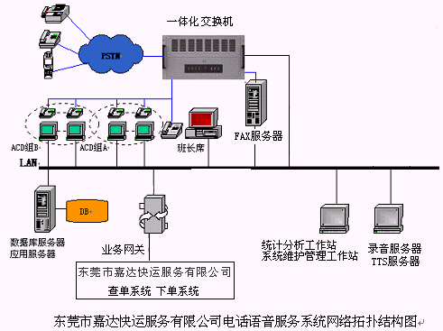 48個(gè)人工座席,落單組為30個(gè)人工座席(其中1個(gè)為落單組班長(zhǎng)座席),查詢組為18個(gè)人工座席(其中1個(gè)為查詢組班長(zhǎng)座席),48路全程同步錄音(可以實(shí)時(shí)設(shè)置或取消),64路IVR, 24路TTS通道,4路傳真,64條模擬中繼線路接入,支持普通話、廣東話等多語種服務(wù)的語音合成(TTS);提供各種話音、傳真集成服務(wù),提供辦公時(shí)間服務(wù)流程與非辦公時(shí)間服務(wù)流程,人工服務(wù)落單,自助落單,貨物在途狀況人工服務(wù)查詢,貨物在途狀況自助查詢,業(yè)務(wù)咨詢,語音信箱,傳真服務(wù)等業(yè)務(wù)功能,實(shí)現(xiàn)與后臺(tái)下單系統(tǒng),貨物在途狀況查詢系統(tǒng),GPS系統(tǒng)等的無縫集成,為客戶提供24小時(shí)全天候的快捷優(yōu)質(zhì)服務(wù)。