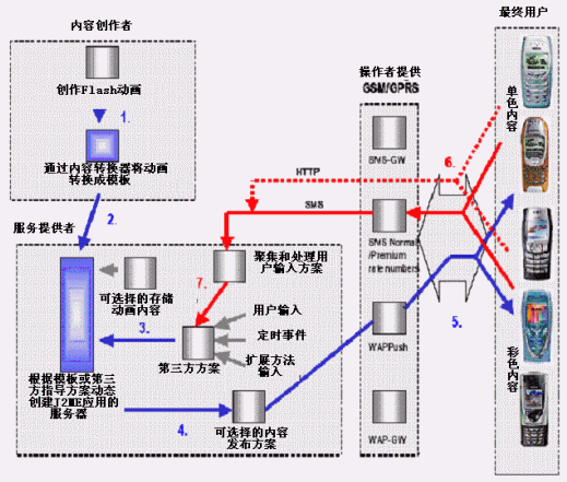 通過目前的2/2.5G網(wǎng)絡傳輸,運行Flash動畫轉換成的應用程序不需要在手機上安裝特別的播放器軟件,只需要支持Java技術。 該方案可以用現(xiàn)有的網(wǎng)絡和J2ME設備,使用戶提前進入多彩的無線世界,給用戶一個新的選擇。