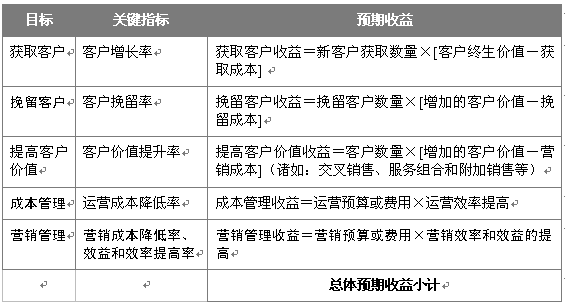 "效益目標" 這一戰(zhàn)略考慮是設定企業(yè)客戶關系管理戰(zhàn)略中的針對細分客戶的收益目標,與之相關聯(lián)的戰(zhàn)略重點是最大化針對細分客戶的客戶價值。這一部分將對以后工作中的客戶關系管理客戶收益提供方向和評估方法。