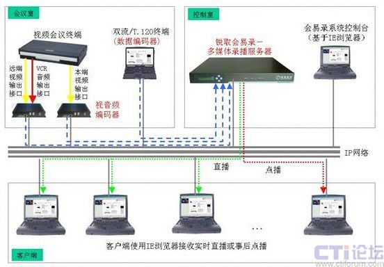 同時系統(tǒng)具備直播、點播功能,用戶使用IE瀏覽器即可接收會議的實時直播或進行事后點播,通過直播或點播可同步觀看到會議中視音頻和數(shù)據(jù)內(nèi)容,觀看會議的效果如同身處會場之后。會易錄極大地擴展了視頻系統(tǒng)的功能和應(yīng)用,適合任何已有或擬建視頻會議系統(tǒng)的用戶使用。