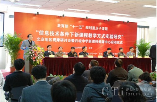 CTI論壇(ctiforum)11月11日消息(記者 潘婷):2009年11月5日, 教育部基礎教育課程教材發(fā)展中心在北京日壇中學隆重舉辦了“信息技術條件下新課程教學方式實驗研究”北京地區(qū)觀摩研討會暨日壇中學課程資源中心啟動儀式。到會的有教育部及北京市教委相關領導及北京市內及外省市學校的的領導及老師600多人。