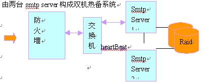 2. 2個smtp server可以構成負載均衡,同時構成雙機熱備份,正常情況下,smtp流量平均分配到兩臺smtp server;一旦其中一臺出現(xiàn)故障,另外一臺將自動接管smtp服務。