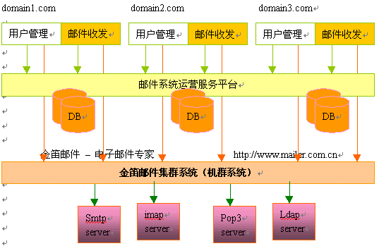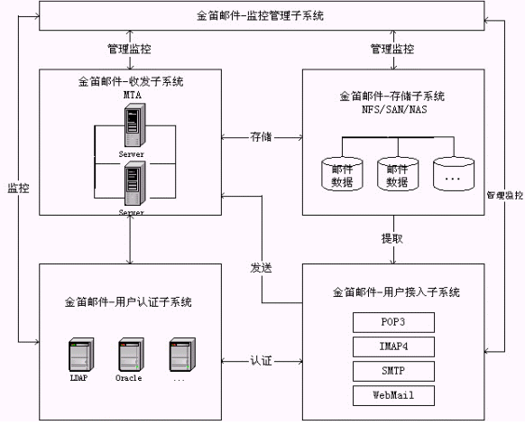 金笛郵件系統(tǒng)五大功能模塊邏輯關系圖