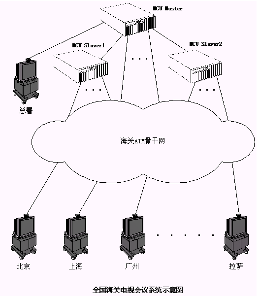 1998年海關(guān)系統(tǒng)完成了ATM骨干網(wǎng)的建設(shè),與此同時(shí)覆蓋總署、分署和45個(gè)直署海關(guān)及院校的全國(guó)海關(guān)電視會(huì)議系統(tǒng)也同步建成。海關(guān)ATM網(wǎng)是集數(shù)據(jù)、話音和視頻為一體的綜合業(yè)務(wù)傳輸平臺(tái),全國(guó)海關(guān)電視會(huì)議系統(tǒng)便是其承載的一項(xiàng)非常重要的應(yīng)用?紤]到此系統(tǒng)的先進(jìn)性和穩(wěn)定性對(duì)全國(guó)海關(guān)的至關(guān)重要,經(jīng)再三比較和篩選,最后決定由專業(yè)視頻會(huì)議解決方案提供商直真視通科技有限公司承建。