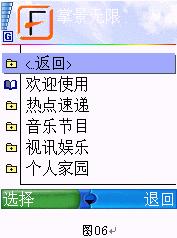 4.現(xiàn)在此軟件支持的媒體網(wǎng)站只有"掌景無(wú)限",估計(jì)以后隨著肥 6 用戶及在線視頻播放功能的普及,類(lèi)似的網(wǎng)站會(huì)更多,打開(kāi)"掌景無(wú)限",則系統(tǒng)會(huì)提示你所選擇的連接接入點(diǎn),