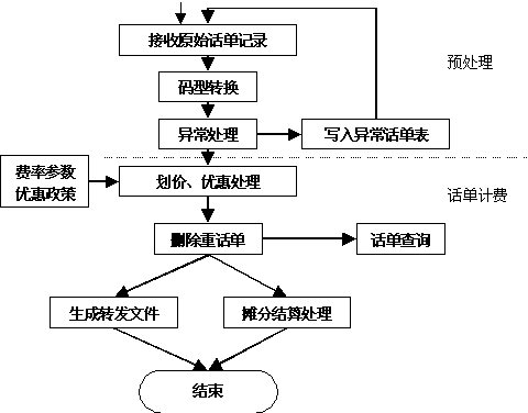 計(jì)費(fèi)劃價(jià)流程圖 在整個(gè)聯(lián)機(jī)計(jì)費(fèi)系統(tǒng)平臺(tái)中,計(jì)費(fèi)處理模塊處于核心的地位,而在計(jì)費(fèi)處理模塊中,最主要的功能就是劃價(jià)、優(yōu)惠,一個(gè)好的計(jì)費(fèi)系統(tǒng)要能適應(yīng)靈活多變的優(yōu)惠政策,為電信服務(wù)商吸引更多的用戶。 對(duì)于話單計(jì)費(fèi)的功能描述如下: