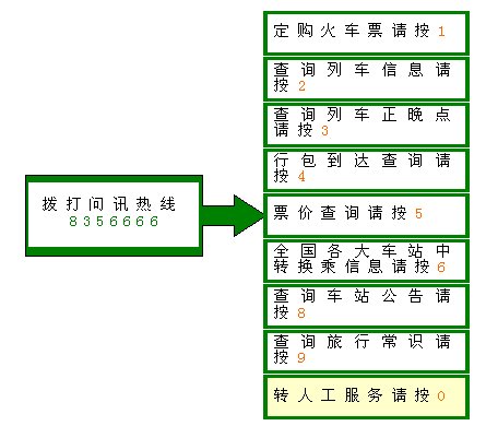 應(yīng)用訊飛語(yǔ)音技術(shù)的鄭州火車(chē)站電話(huà)問(wèn)訊系統(tǒng),不僅規(guī)模比原有系統(tǒng)擴(kuò)大一倍,而且服務(wù)內(nèi)容更加豐富,提供實(shí)時(shí)更新的信息,真正實(shí)現(xiàn)了對(duì)旅客的個(gè)性化服務(wù)。下圖所列即該自動(dòng)電話(huà)問(wèn)訊熱線(xiàn)主要功能: