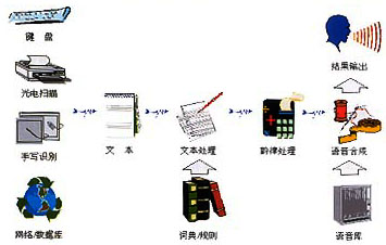 -----按照人類言語功能的不同層次,語言合成也可分成三個(gè)層次,它們是:(1)從文字到語音的合成(Text-To-Speech);(2)從概念到語音的合成(Concept-To-Speech);(3)從意向到語音的合成(Intention-To-Speech)。這三個(gè)層次反映了人類大腦中形成說話內(nèi)容的不同過程,涉及人類大腦的高級神經(jīng)活動(dòng)。不難想象,即使是按規(guī)則的文字到語音合成(文語合成)也已經(jīng)是相當(dāng)困難的任務(wù)。為了合成出高質(zhì)量的語言,除了依賴于各種規(guī)則,包括語義學(xué)規(guī)則、詞匯規(guī)則、語音學(xué)規(guī)則外,還必須對文字的內(nèi)容有很好的理解,這將涉及自然語言理解的問題。從這一點(diǎn)講,文語轉(zhuǎn)換系統(tǒng)實(shí)際上也可看作一個(gè)人工智能系統(tǒng)。圖1顯示了一個(gè)完整的文語轉(zhuǎn)換系統(tǒng)示意圖。文語轉(zhuǎn)換過程是先將文字序列轉(zhuǎn)換成音韻序列,再由語音合成器生成語音波形。其中第一步涉及語言學(xué)處理,例如分詞、字音轉(zhuǎn)換等,以及一整套有效的韻律控制規(guī)則;第二步需要先進(jìn)的語音合成技術(shù),能按要求實(shí)時(shí)合成出高質(zhì)量的語音流。因此一般說來,文語合成系統(tǒng)都需要一套復(fù)雜的文字序列到音素序列的轉(zhuǎn)換程序,也就是說,文語轉(zhuǎn)換系統(tǒng)不僅要應(yīng)用數(shù)字信號處理技術(shù),而且必須有大量的語言學(xué)知識的支持。當(dāng)然其中語音合成終究還是最基本的部分,它相當(dāng)于“人工嘴巴”,任何語言合成系統(tǒng)包括文語轉(zhuǎn)換系統(tǒng),都離不開語音合成器。