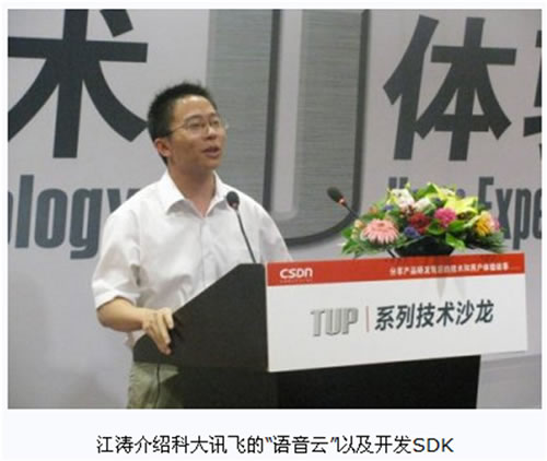 7月16日下午,CSDN TUP第十二期“移動(dòng)開發(fā)技術(shù)沙龍:次世代人機(jī)交互接口及應(yīng)用開發(fā)”在中國科學(xué)院計(jì)算技術(shù)研究所一層報(bào)告廳舉行。本次活動(dòng)邀請(qǐng)了微軟亞洲工程院軟件工程師馬寧、神念科技大中華區(qū)總裁張彤和科大訊飛副總裁江濤,分別在Kinect應(yīng)用開發(fā)、腦際接口技術(shù)的應(yīng)用和語音輸入交互三個(gè)方面進(jìn)行了演講和互動(dòng),F(xiàn)場(chǎng)爆滿,氣氛熱烈。