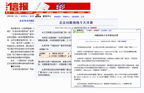 北京向?qū)峋經(jīng)過(guò)一個(gè)多月緊張的開通工作,終于于4月18號(hào)正式開通。新浪、網(wǎng)易、TOM等媒體爭(zhēng)相報(bào)道北京向?qū)У拈_通情況。