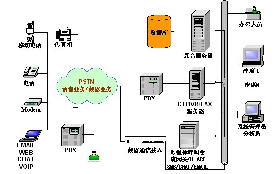 - 采用國內(nèi)外高性能程控交換機,具有標準CTI接口。