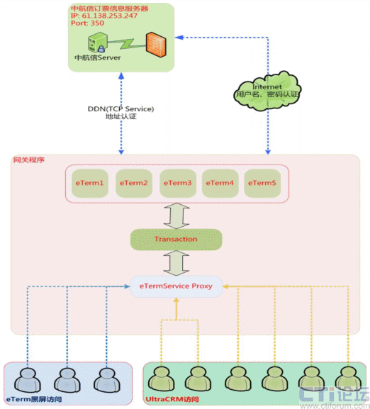航空訂票呼叫中心由CallThink-M多媒體呼叫中心平臺、Eterm代理服務(wù)器 和UltraCRM 航空訂票應(yīng)用業(yè)務(wù)系統(tǒng)組成。