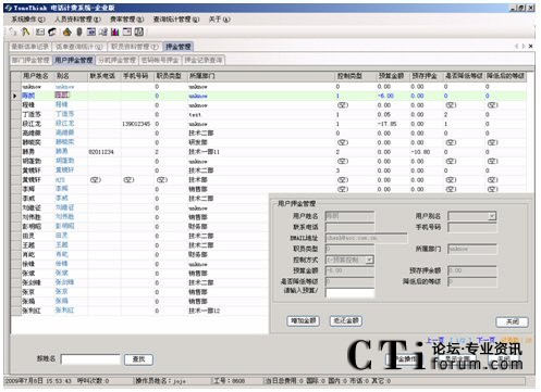 系統(tǒng)提供話費的預(yù)算控制和預(yù)存控制(押金管理)功能,用戶可以選擇使用其中一種或都不使用,當(dāng)電話費用達(dá)到設(shè)定的費用金額,系統(tǒng)按照設(shè)定的處理方式(降低分機(jī)撥打電話的等級)進(jìn)行。