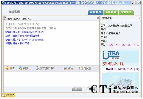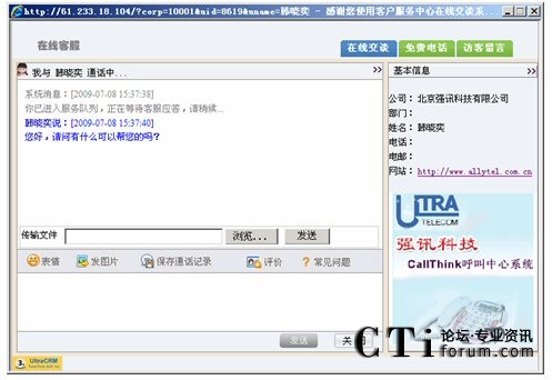 訪(fǎng)客可以通過(guò)點(diǎn)擊網(wǎng)站的 “客服”鏈接自動(dòng)選擇交談對(duì)象或點(diǎn)擊“客服人員”進(jìn)行交談。