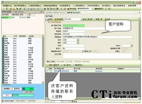 當(dāng)有電話(huà)來(lái)電時(shí),系統(tǒng)顯示來(lái)電號(hào)碼及來(lái)電人員的客戶(hù)資料信息;