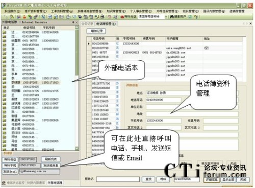 其所有資料顯示在主界面右側(cè)的“外部電話(huà)本”中。在轉(zhuǎn)發(fā)工單等功能中也將使用外部電話(huà)簿資料。如圖所示: