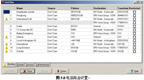 管理員還可以設(shè)定所有電話(huà)的處理規(guī)則,如:電話(huà)的路由規(guī)則(節(jié)約費(fèi)用)、多點(diǎn)間使用的語(yǔ)音壓縮方式(節(jié)約帶寬)等。
