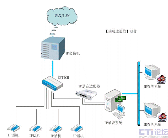 【瑞明達通信】是國內(nèi)較早從事專業(yè)計算機電話語音系統(tǒng)(CTI)產(chǎn)品的開發(fā)商, 在客戶交互式解決方案行業(yè)中有十多年的從業(yè)經(jīng)驗,具備雄厚的語音產(chǎn)品開發(fā)能力。最近幾年,基于 IP 的下一代通信,正在以前所未有的速度改變著全世界的通信架構(gòu)和商業(yè)格局!救鹈鬟_通信】作為錄音技術(shù)的領(lǐng)先廠商,就已經(jīng)具有前瞻性的潛心致力于基于IP通訊線路的多媒體記錄解決方案的研發(fā),RMD_VoIPlog錄音系統(tǒng)是由【瑞明達通信】自行開發(fā)研制的新一代IP錄音系統(tǒng)。該系統(tǒng)在記錄VoIP語音的同時,所需的語音資源通過軟件方式或硬件平臺直接由網(wǎng)絡(luò)中的RTP等數(shù)據(jù)流獲取,無須和座席分機或中繼線進行并接,因此是一種軟件/硬件分別實現(xiàn)的錄音系統(tǒng),是真正的基于IP 的錄音解決方案。RMD_VoIPlog錄音系統(tǒng),是以數(shù)字記錄、數(shù)據(jù)庫查詢、光盤存儲等先進技術(shù)為手段,為通話語音的錄制、管理提供了一種先進、科學(xué)而又行之有效的方法。二、RMD_VoIPlog錄音系統(tǒng)運行環(huán)境