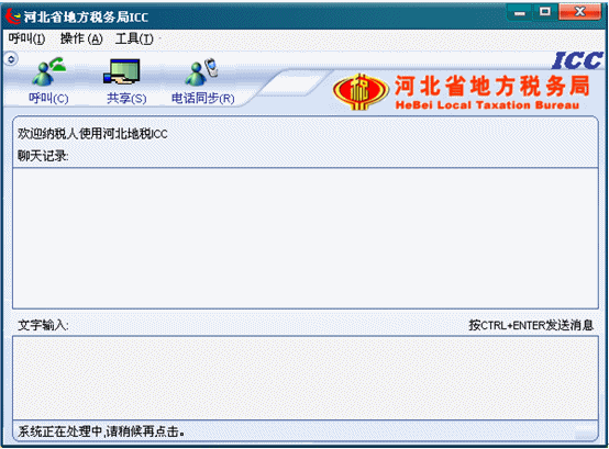 如要掛斷后重新呼叫,請稍等片刻再重新呼叫。如果過早重新點(diǎn)擊共享按鈕,ICC界面左下角狀態(tài)欄文字提示“系統(tǒng)正在處理中,請稍后再點(diǎn)擊”。看到此提示,請稍候再點(diǎn)擊呼叫按鈕。如下圖所示: