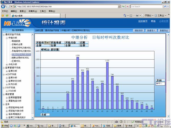 中繼分析之日每時呼叫次數(shù)對比---Hi-link3.0報表應用分析