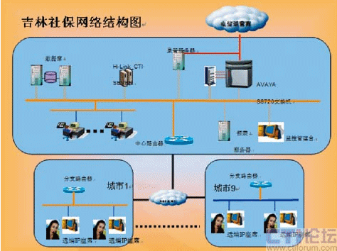 吉林社保12333電話咨詢平臺采用AVAYA8720交換機,商路通Hi-Link呼叫中心中間件,4E1中繼接入,70個IP座席,120路IVR,70路座席錄音。該方案的核心是在全省范圍內(nèi)建立一套統(tǒng)一接入,集中控制的呼叫中心平臺,省內(nèi)的全部電話呼叫統(tǒng)一接入省級機構(gòu)的平臺,借助IP網(wǎng)絡(luò)對省、市州的各級坐席進行統(tǒng)一的呼叫分配、錄音等管理。