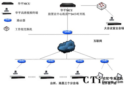 華平根據東森控股的實際需求,為用戶搭建了覆蓋上海、南昌、臺州辦公區(qū)、臺州營業(yè)部的高標清混合組網和軟硬件混合組網方案。系統(tǒng)基于公共互聯(lián)網實現(xiàn)部署,并充分利用了華平多種網絡接入混合的優(yōu)勢,并采取MCU雙網卡接入解決方案,全面實現(xiàn)了電信、網通的網絡良好互通,系統(tǒng)極大的拓展了應用的范圍,即使在差旅途中,只要能接入Internet網絡,用戶就可以輕松地參與會議交流,如同身與各方坐一個會議室。系統(tǒng)還提供強大的數據輔助功能,參會者可以將各種需要交流的數據、圖形、報表、文字等信息同步顯示給所有相關人員,方便的進行工作交流,業(yè)務匯報和討論等,使異地溝通變的更加簡單和自如。