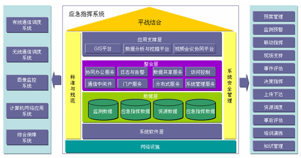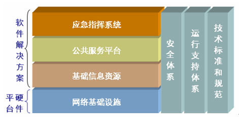 根據(jù)突發(fā)公共事件突發(fā)性、區(qū)域性、持續(xù)性等特點,以及應急組織指揮機構(gòu)及其職責、工作流程、應急響應、處置步驟、處置方案等應急業(yè)務(wù)的集成,應急指揮系統(tǒng)基礎(chǔ)平臺建設(shè)主要包括以下幾個方面。