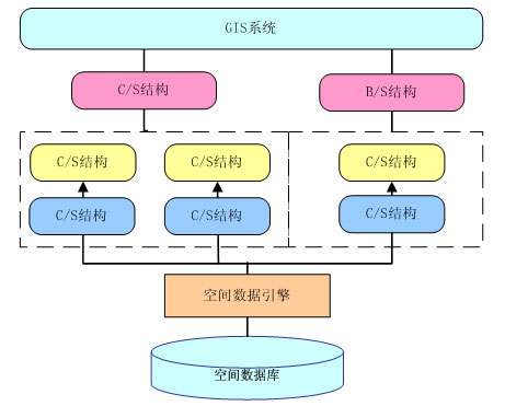 GIS應用劃分成基于C/S結(jié)構(gòu)的應用和基于B/S結(jié)構(gòu)的應用兩種。前一種結(jié)構(gòu)適用于實現(xiàn)數(shù)據(jù)的采集、入庫、編輯和復雜的空間分析、專題制圖等應用,主要是面向數(shù)據(jù)維護人員和專業(yè)分析人員使用的,以及為領(lǐng)導和專家提供輔助決策和分析之用;而后一種結(jié)構(gòu)比較適合于實現(xiàn)簡單的地圖發(fā)布、空間查詢等應用,主要面向的是廣大的Internet用戶。由于這兩種結(jié)構(gòu)各有優(yōu)缺點,而從指揮中心的總體角度來看,兩種結(jié)構(gòu)的應用都是不可缺少的。系統(tǒng)的總體結(jié)構(gòu)將是一個同時包含了C/S和B/S兩種結(jié)構(gòu)的混合型、綜合型結(jié)構(gòu)。系統(tǒng)結(jié)構(gòu)如下: