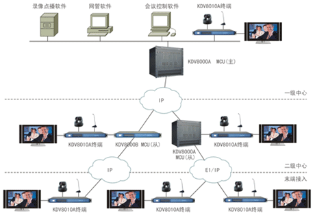 作為一款電信級(jí)MCU,KDV8000A具有強(qiáng)大的接入能力和豐富的功能模塊,可靈活應(yīng)用于各類視頻會(huì)議系統(tǒng)。下圖1是KDV8000A在節(jié)點(diǎn)數(shù)量多、網(wǎng)絡(luò)環(huán)境復(fù)雜的大型視頻會(huì)議系統(tǒng)中的典型應(yīng)用,下圖2是KDV8000A在衛(wèi)星視頻會(huì)議系統(tǒng)中的應(yīng)用,下圖3是KDV8000A在多級(jí)級(jí)聯(lián)系統(tǒng)中的應(yīng)用。
