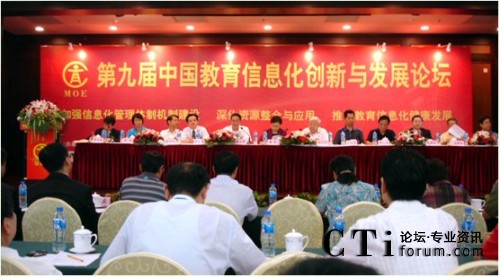 CTI論壇(ctiforum)07月16日消息: 2009年7月12日~7月13日,由教育部教育管理信息中心主辦的“第九屆中國教育信息化創(chuàng)新與發(fā)展論壇”在北京中苑賓館隆重召開。來自各級教育行政部門的相關領導,各類學校的主管校長、信息化部門負責人參加了此次論壇,開幕式上教育部副部長魯昕同志發(fā)表了重要講話,為教育事業(yè)的改革與發(fā)展指明了方向。
