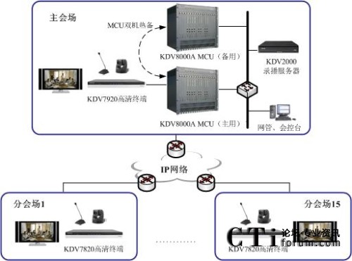 在充分了解用戶應用需求的基礎上,2011年初科達為青島工商局規(guī)劃部署了一套高清視頻會議系統(tǒng)。其中,為了進一步提升用戶的遠程溝通體驗和交互感,科達在市局主會場部署了1臺KDV7920高清視頻會議終端,在下屬14個分(市)局以及工商所分會場則各部署了1臺KDV7820高清視頻會議終端;而考慮到青島工商對于系統(tǒng)安全性、穩(wěn)定性方面的較高要求,科達則為其部署了 2臺KDV8000A多點控制單元(MCU)以實現雙機熱備;此外,系統(tǒng)還部署了KDV2000錄播服務器,以實現會議、培訓過程的錄像和點播。整個系統(tǒng)通過工商局內部的專網實現視音頻溝通和數據共享。