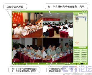 另外,通過該系統(tǒng)還可隨時調(diào)用各值班點的視頻圖象,在發(fā)生突發(fā)事件時各指揮人員能夠通過共同查看相關(guān)視頻資料來共商處理方案,從而有效的做好應(yīng)急處理工作。