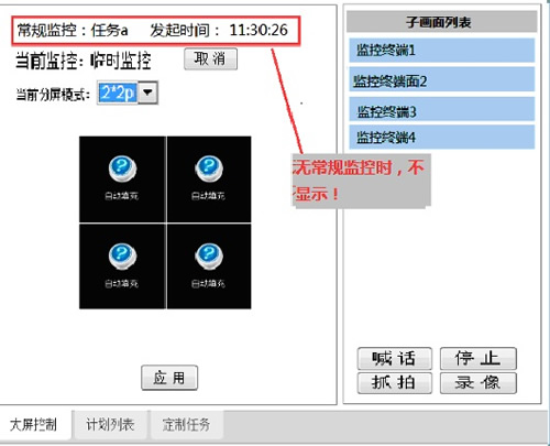 監(jiān)控任務:用戶對一組監(jiān)控終端設置之后,會按其調置的時間點實施監(jiān)控。