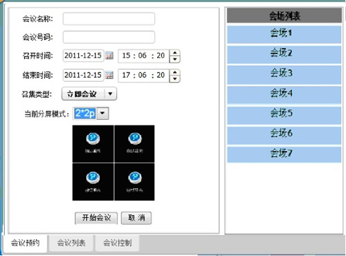 在調度臺界面主界面,點擊“視頻會議”按鈕,在終端區(qū)選擇會場,再次點擊“視頻會議”按鈕,界面切換到會議設置界面,進行相應的設置,點擊“開始會議”按鈕即可。