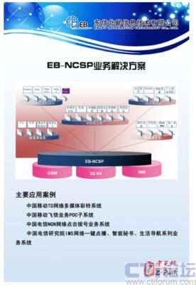 EB-NCSP于2005年榮獲“電子信息產(chǎn)業(yè)發(fā)展基金優(yōu)秀項(xiàng)目”獎(jiǎng),2007年6月EB宣布與中國(guó)移動(dòng)簽訂TD-SCDMA規(guī)模網(wǎng)絡(luò)技術(shù)應(yīng)用試驗(yàn)網(wǎng)工程多媒體彩鈴業(yè)務(wù)平臺(tái)訂單,負(fù)責(zé)承建TD-SCDMA網(wǎng)絡(luò)下的多媒體彩鈴平臺(tái)的工程建設(shè)。此次中標(biāo)說(shuō)明了EB在TD-SCDMA的3G業(yè)務(wù)解決產(chǎn)品和方案的成熟性,是EB在繼2G彩鈴成熟商用之后又一大進(jìn)展,標(biāo)志著EB的3G核心業(yè)務(wù)平臺(tái)(NCSP)對(duì)各個(gè)3G標(biāo)準(zhǔn)、對(duì)各種業(yè)務(wù)支持的進(jìn)一步完善,同時(shí),也進(jìn)一步突出了EB作為電信增值業(yè)務(wù)專家的品牌形象。