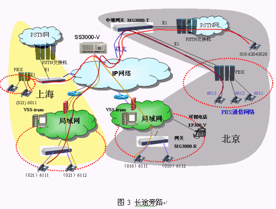 我們建設(shè)mindSYS系統(tǒng)的時候基本上不改變原來PBX的布線和配置,PBX原來的數(shù)字中繼直接連接到運營商的程控交換機(jī),我們現(xiàn)在只是將PBX的數(shù)字中繼連接到中繼網(wǎng)關(guān)MG3000-T。PBX通信系統(tǒng)的電話完全沒有改變,還使用原來的電話號碼,打分機(jī)直接撥小號,打外線先撥0。mindSYS系統(tǒng)下的電話使用方式也完全一樣,對用戶來說就是一套系統(tǒng)。如北京的6011可以直接撥打6111,6111用戶也可以直接撥打6011,6111打外線先撥0,如062043020。北京的用戶呼叫異地用戶需要撥打完整號碼(大號),如北京的6011用戶撥0216111就可以接通上海的用戶,反之亦然。mindSYS系統(tǒng)的電話(圖2的所有電話)之間通話都免費。這樣我們的行業(yè)用戶可以既不改變原來的使用習(xí)慣,又能夠靈活的規(guī)劃各地的電話號碼來完成一個大型的跨地域的電話系統(tǒng)。