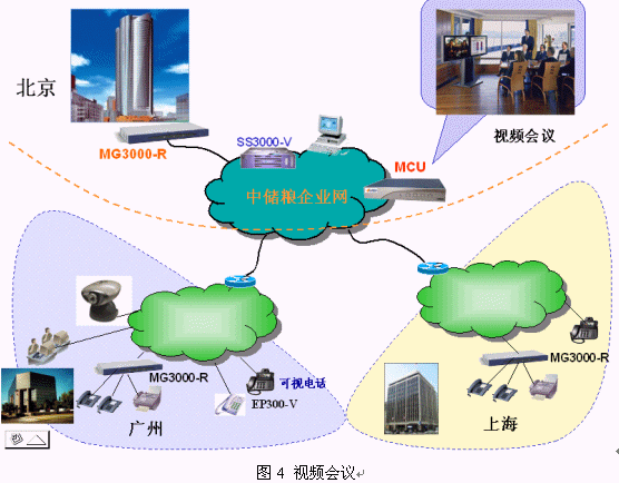 根據(jù)用戶的需求,增加視頻會議功能只需在前面提到的方案中添加相應(yīng)MCU設(shè)備,既能夠和該VoIP系統(tǒng)兼容,又可以兼容其他的視頻系統(tǒng)。從而做到根據(jù)用戶所需定制配置。視頻會議系統(tǒng)特點如下: