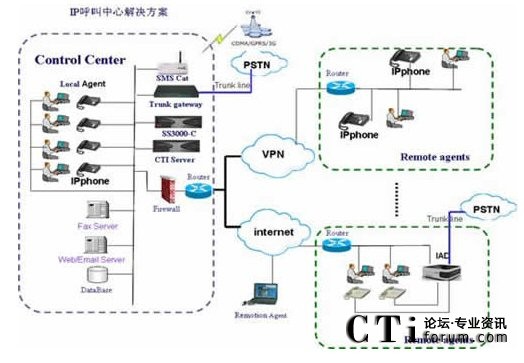 - 服務(wù)中心網(wǎng)絡(luò)化——充分利用IP話機(jī)的靈活移動(dòng)和免費(fèi)特點(diǎn),服務(wù)中心的人工坐席可以靈活設(shè)置;