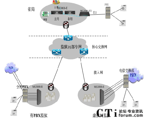 根據河南監(jiān)獄管理局情況大唐高鴻提出在監(jiān)獄系統(tǒng)現(xiàn)有的網絡建立IP語音系統(tǒng),使各地監(jiān)獄之間的語音服務運營在現(xiàn)有完善的IP網絡上,實現(xiàn)“語音、數據、視頻三網合一”的先進網絡。