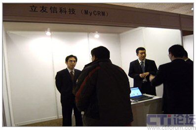 在隨會(huì)附設(shè)的展臺(tái)前,MyCRM更是受到不少參會(huì)企業(yè)的關(guān)注。圖為MyCRM咨詢(xún)顧問(wèn)為參會(huì)企業(yè)家講解MyCRM系統(tǒng):