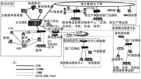 另外,海爾集團電話中心原有的顧客服務(wù)系統(tǒng)屬于第二代Call Center 系統(tǒng),話務(wù)員的工作量較大,服務(wù)功能受到很大的限制,特別是客戶信息及時收集的速度受到影響。為了滿足對市場快速響應(yīng)的需要,海爾集團決定建立具有智能功能(如ACD:自動呼叫分配)的第三代呼叫中心,采用第三代具有ACD技術(shù)(如來電主叫號碼自動顯示、呼叫轉(zhuǎn)移、自動回?fù)艿龋┑暮艚兄行,向客戶提供更個性化的服務(wù)。